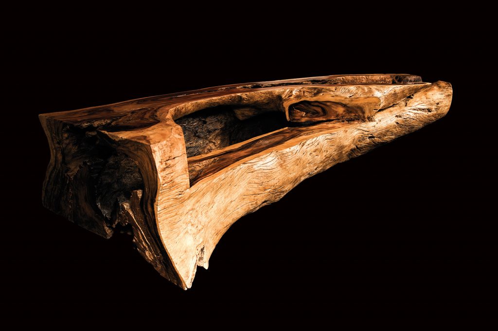 Buri Ram ist ein exklusives Sitzmöbel aus einem einzigen Stück Akazienholz. Diese beeindruckende Bank ist ein einzigartiges und sehr untraditionelles Solitär, das nicht nur durch seine Abmessungen, sondern auch durch die Strukturen und Formen des Holzes besticht.